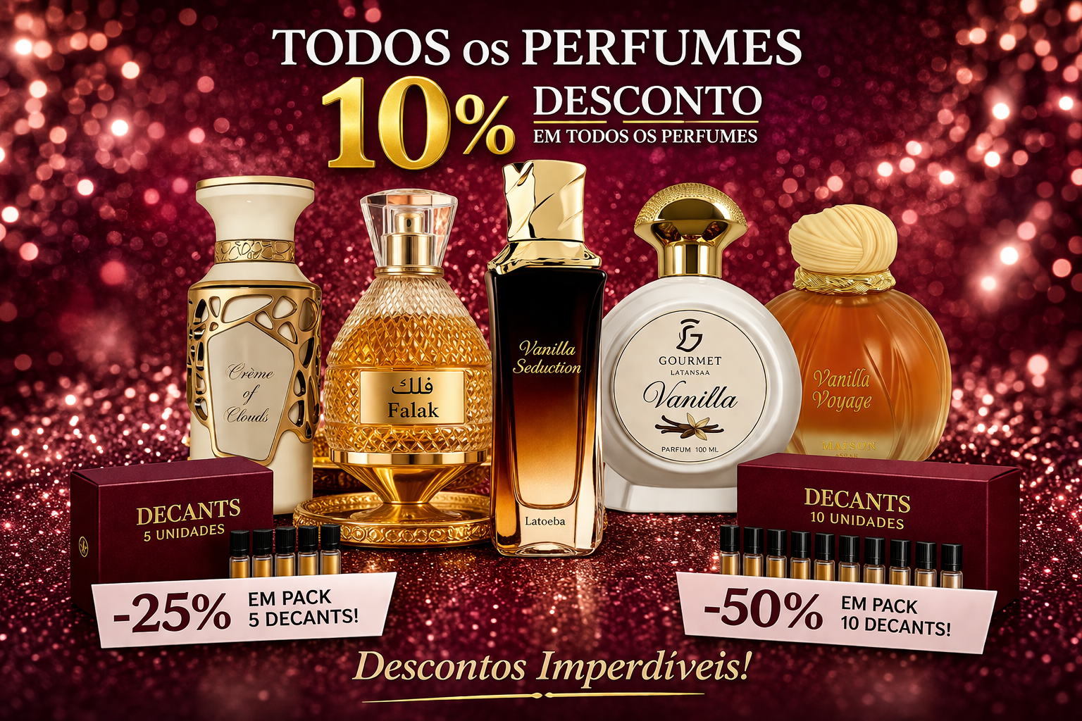 Descobre combinações exclusivas de perfumes árabes com as nossas boxes decants. Ideal para experimentares novas fragrâncias ou levares os teus favoritos para todo o lado. Explora e encontra o aroma perfeito para cada momento!