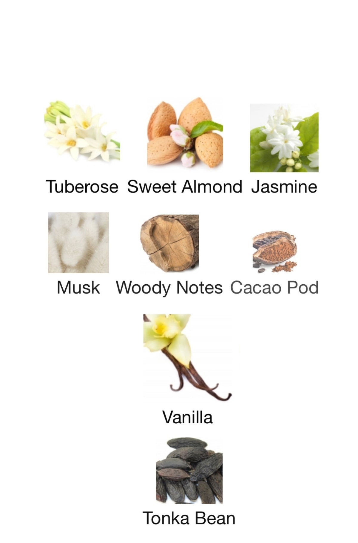 Notas de Topo: Baunilha e amêndoas – uma abertura doce e acolhedora, que desperta os sentidos e cria uma primeira impressão irresistível.