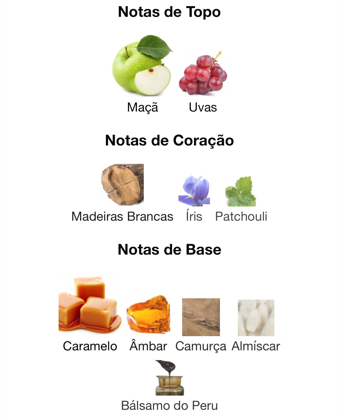 No coração, a nobreza das madeiras brancas alia-se à delicadeza da íris e ao carácter enigmático do patchouli, conferindo à fragrância uma dimensão única e refinada. Finalmente, as notas de fundo evoluem para um final gourmand inigualável, onde o caramelo se funde com o âmbar, a camurça, o almíscar e o bálsamo do Peru, deixando um rastro sedutor e inesquecível.