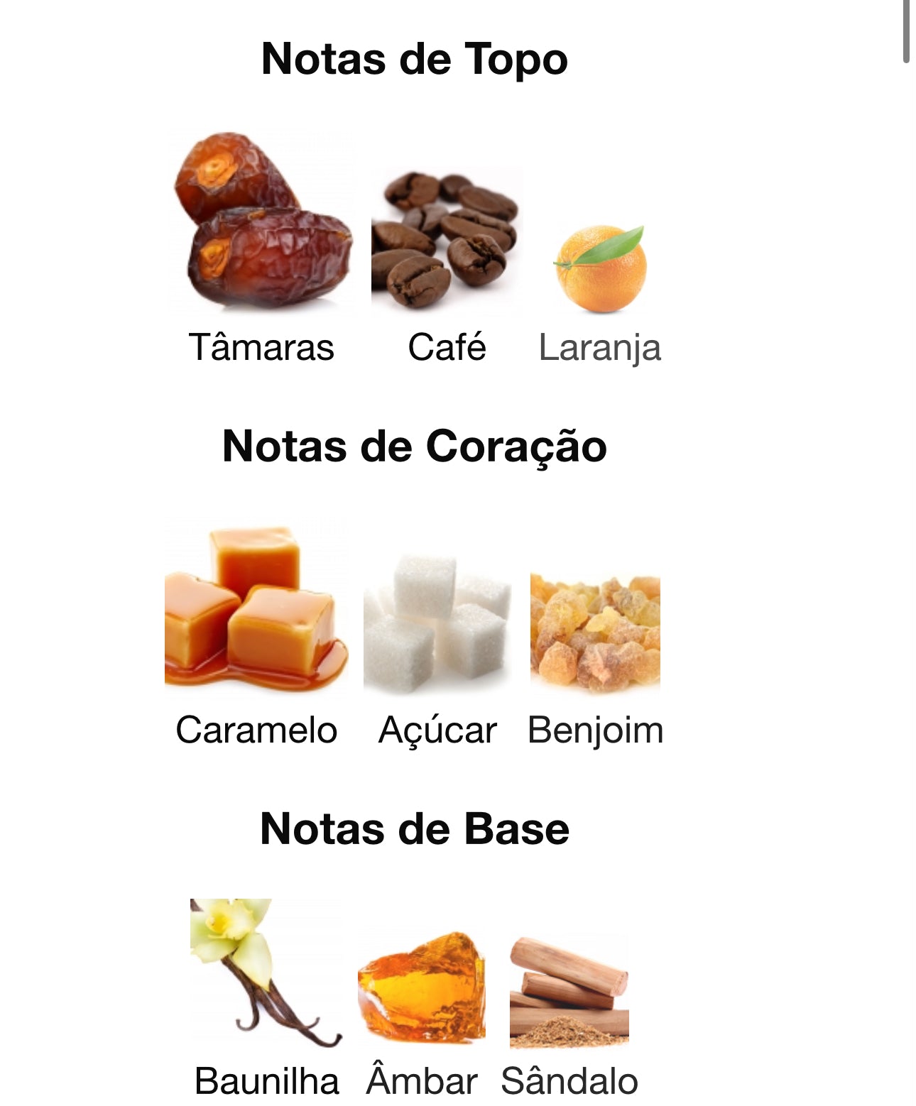 Inspirado no equilíbrio perfeito entre o caramelo cremoso, o café encorpado e a doçura das tâmaras, este perfume gourmand é ideal para quem ama aromas intensos, envolventes e sofisticadamente doces.