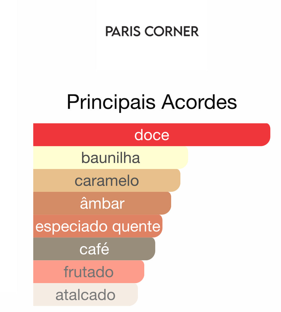 Notas de Fundo: Baunilha, Âmbar e Sândalo