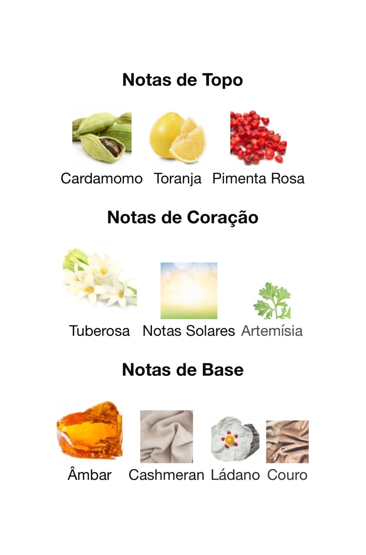 - Notas de Topo: Cítricos vibrantes e especiarias frescas, trazendo um início revigorante e energizante.