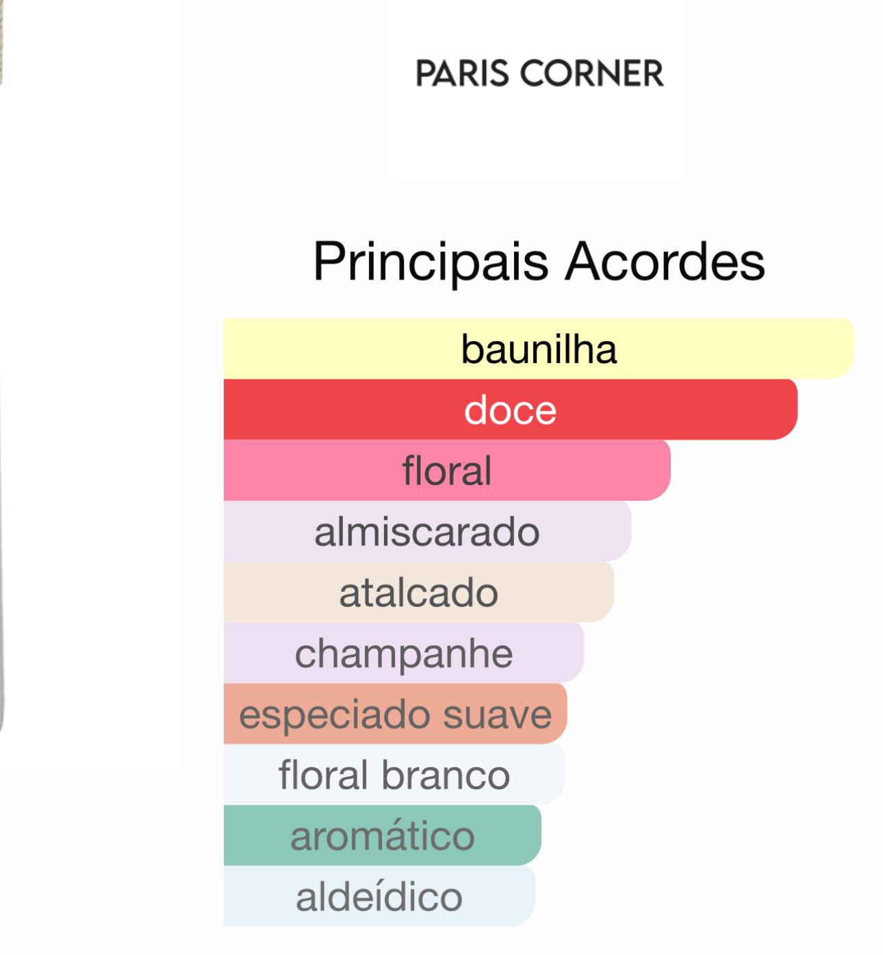 Notas de Fundo: Açúcar, Baunilha e Almíscar