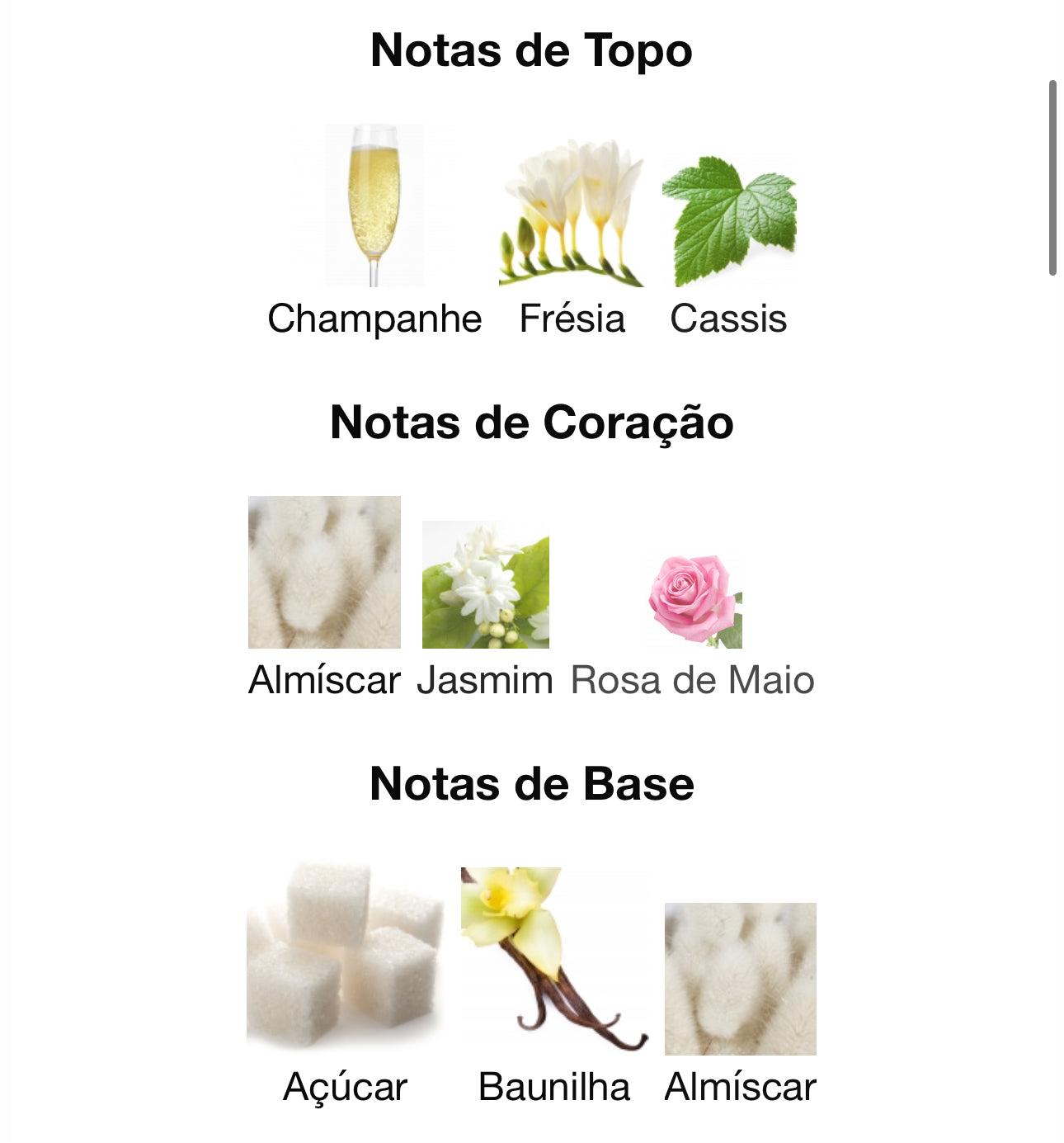 Um perfume doce e sofisticado que combina a leveza do champanhe com a elegância das flores — puro charme em forma de fragrância.