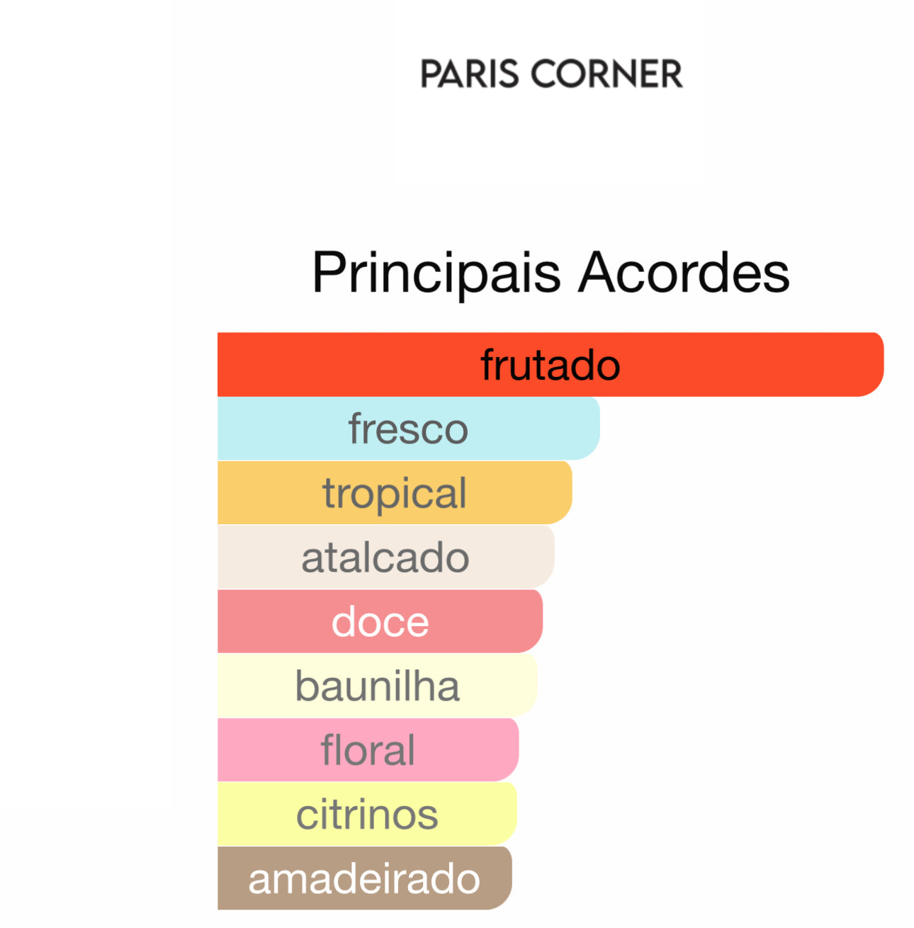 O Khair Fusion da Paris Corner é uma fragrância luminosa, elegante e encantadora — uma fusão perfeita entre frutas suculentas, flores delicadas e o toque cremoso da baunilha.