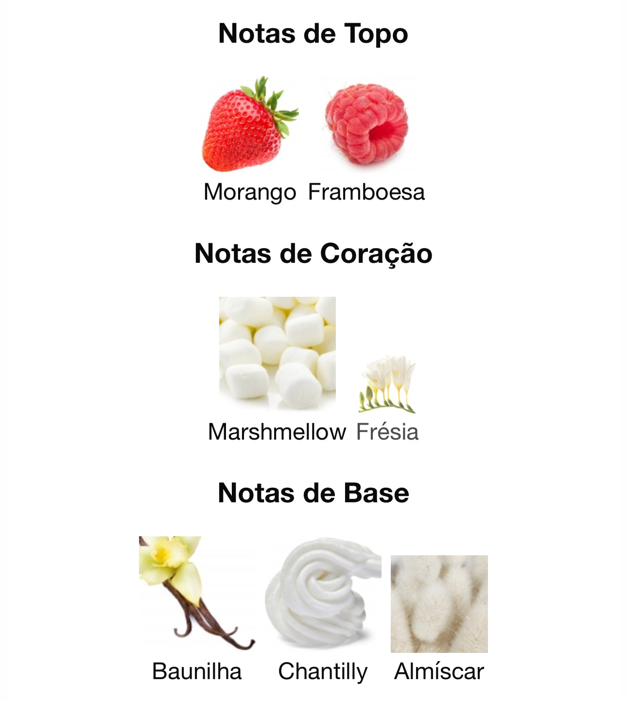 Notas de Fundo: Baunilha, Almíscar e Chantilly