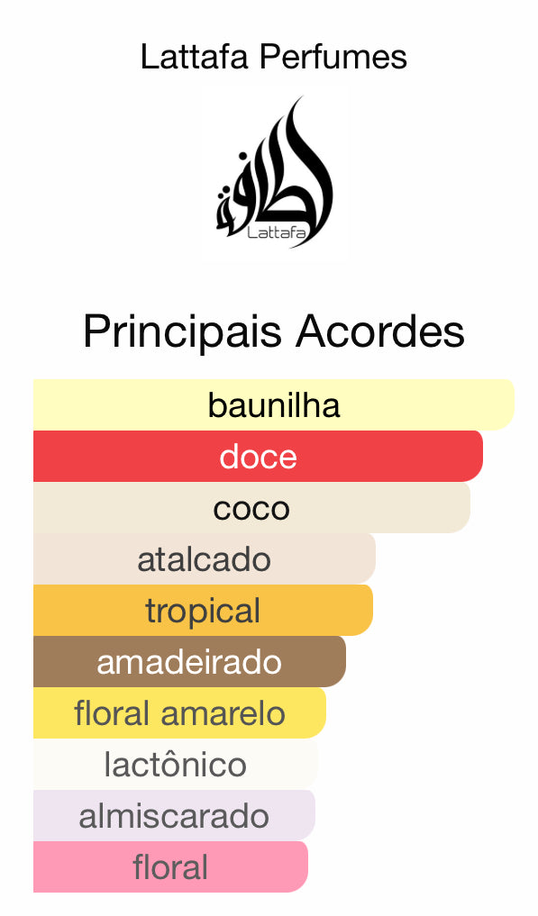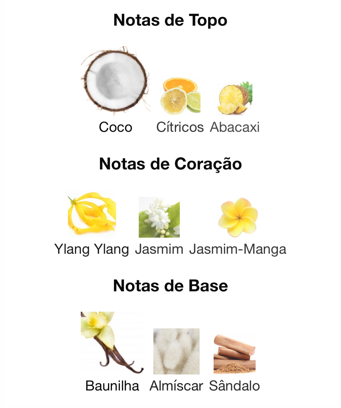 Notas de Fundo: Baunilha, almíscar, sândalo