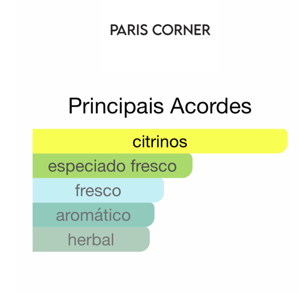 Notas de Topo: Cítricos, Bergamota, Artemísia, Limão, Ylang-Ylang, Incenso e Couro