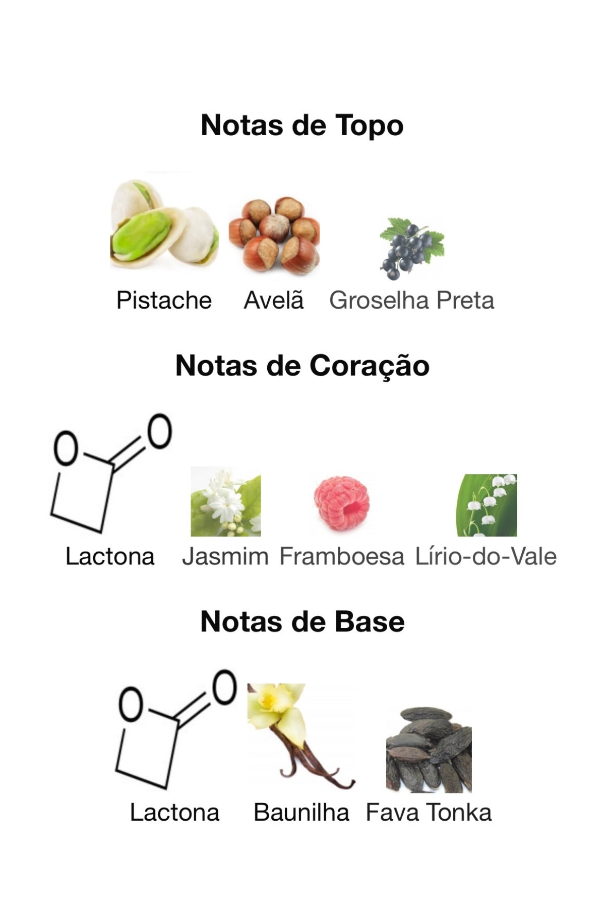 Notas de Fundo: Lactónico, Baunilha, Fava Tonka